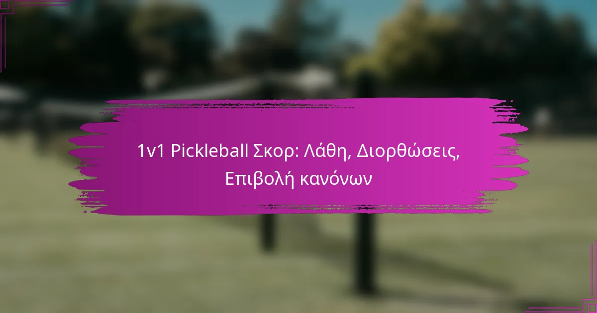Κοινά λάθη βαθμολόγησης στο 1v1 pickleball περιλαμβάνουν την κακή μέτρηση πόντων, τη σύγχυση σχετικά με τους κανόνες σερβιρίσματος και την εσφαλμένη εφαρμογή μορφών βαθμολόγησης. Αυτά τα λάθη μπορούν να διαταράξουν τη ροή του παιχνιδιού και να οδηγήσουν σε διαφωνίες μεταξύ των παικτών. Η κατανόηση αυτών των λαθών μπορεί να βοηθήσει τους παίκτες να διατηρήσουν ακριβείς βαθμολογίες και να απολαύσουν έναν δίκαιο αγώνα.
